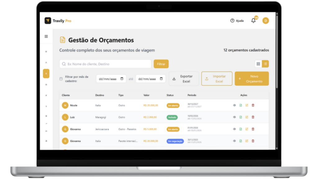 Quando seus dados estão protegidos e organizados, você trabalha com confiança. O Travily Pro garante segurança, estabilidade e controle para que sua agência cresça sem medo de erros, perdas ou retrabalho.