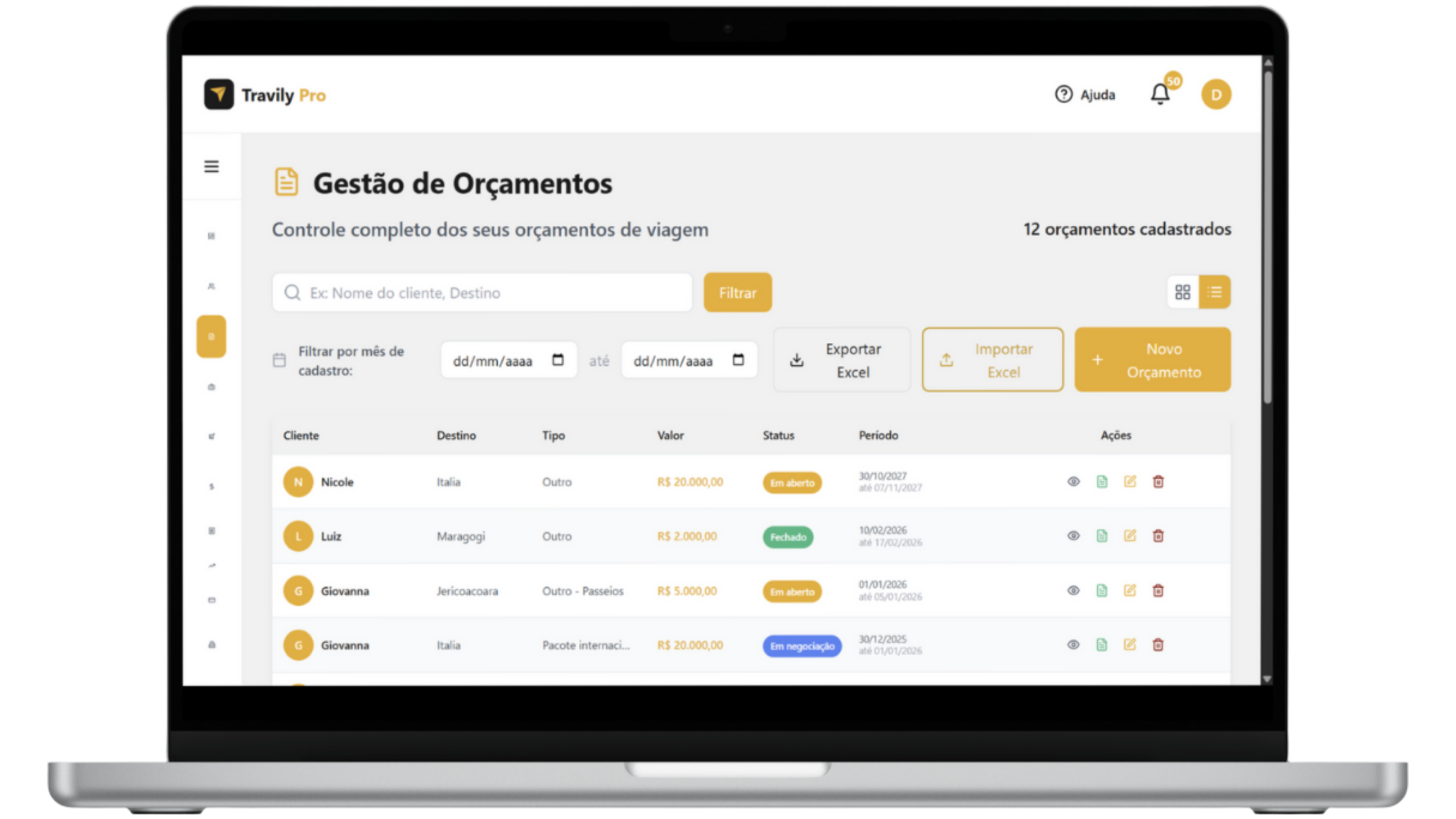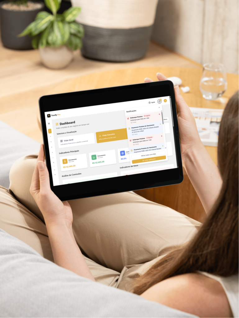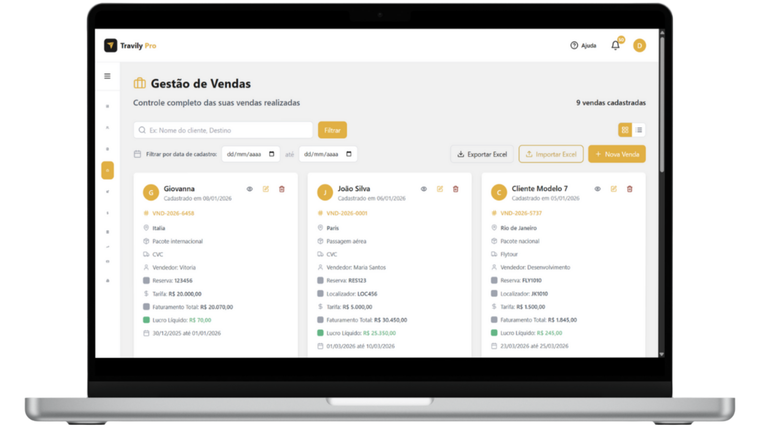Com o Travily Pro, você entende o que gera lucro, o que trava suas vendas e onde estão as maiores oportunidades de crescimento da sua agência.