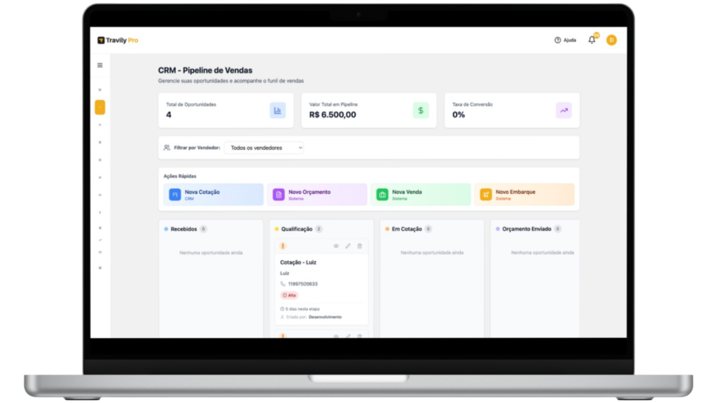 O Travily Pro é um sistema de gestão com CRM integrado, criado para agências de viagens que querem vender mais através de organização, dados e decisões inteligentes.